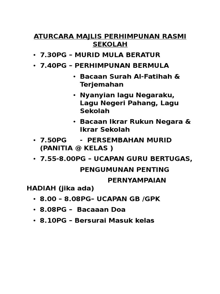 Aturcara Majlis Perhimpunan Rasmi Sekolah Pdf